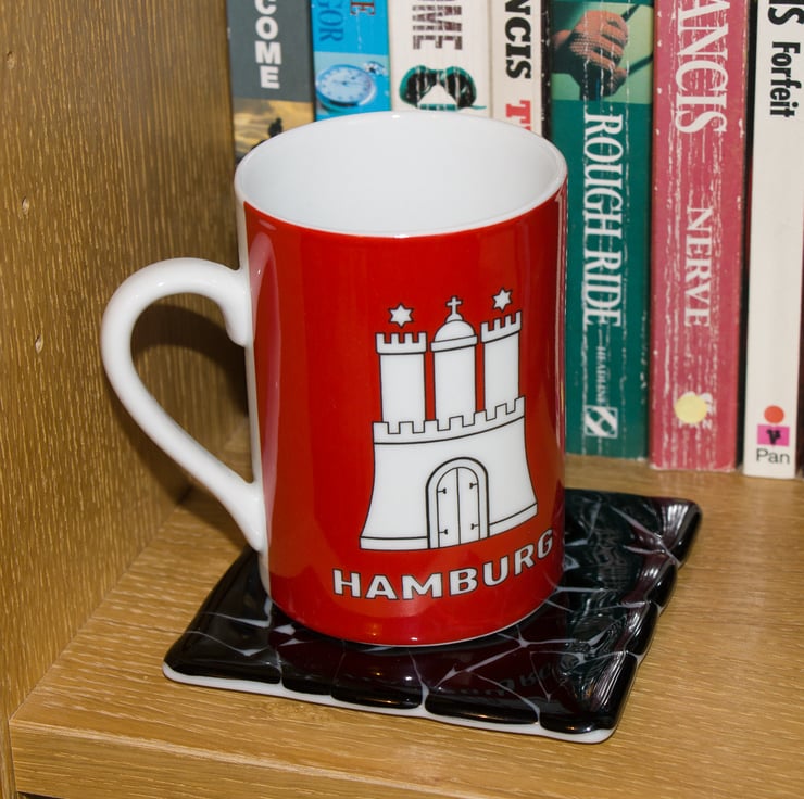 It is fired to around 800°C in our kiln, which fuses the glass into a single piece and rounds off all the corners. Once cooled, we add little rubber feet to the base to protect your surfaces and provide stability.