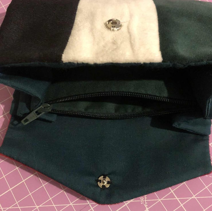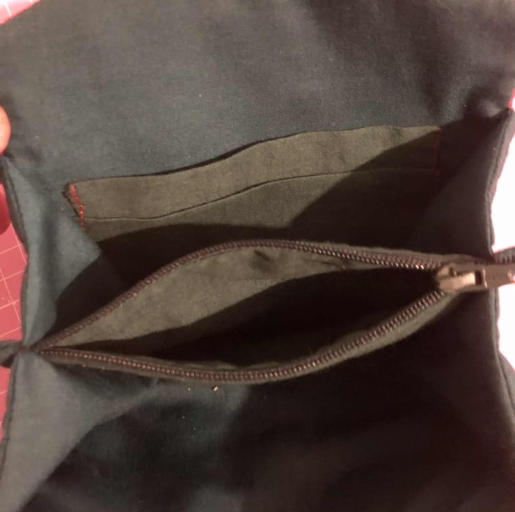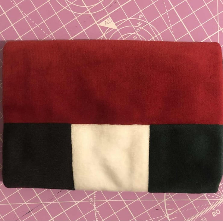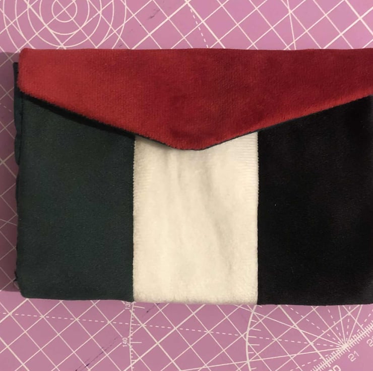 Soft velvety envelope purse, with card slots and zipped coin section in the middle. Made from velvet fabric outer and cotton lining and inner.
