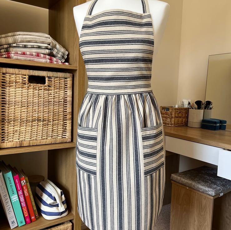 Handmade Striped Cotton Navy Apron