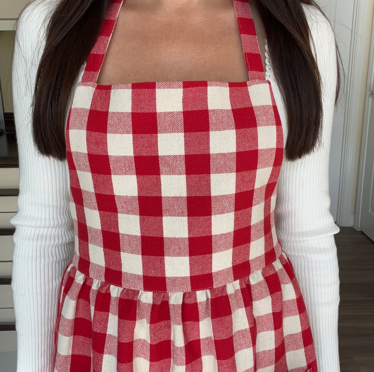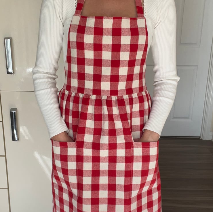 Handmade Red Gingham Cotton Apron