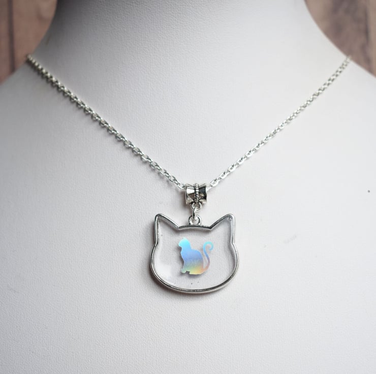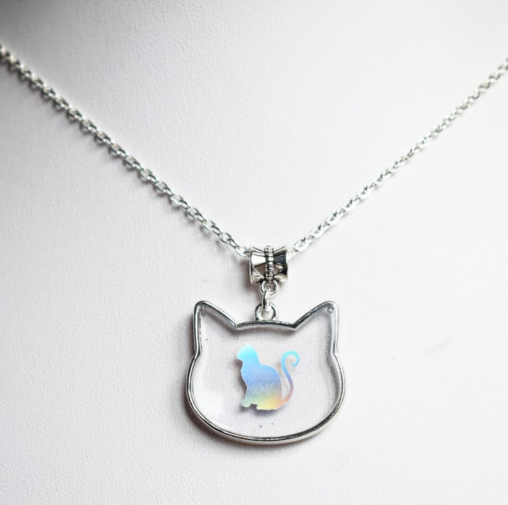 Holographic Cat Pendant Necklace, Cat Lover Gift