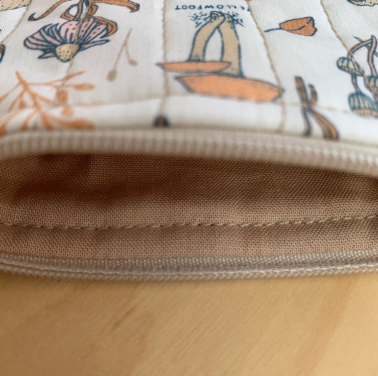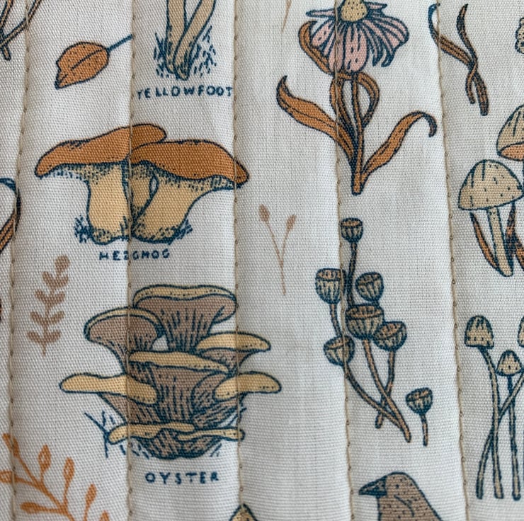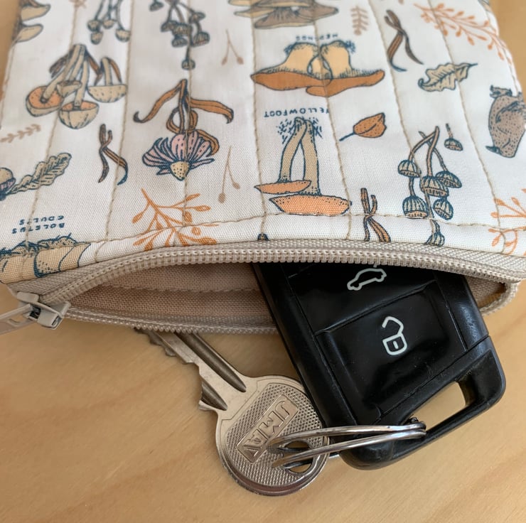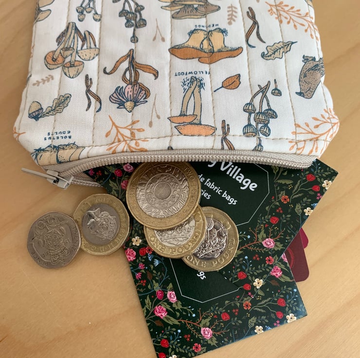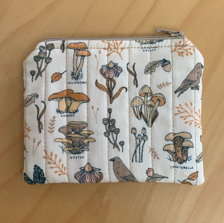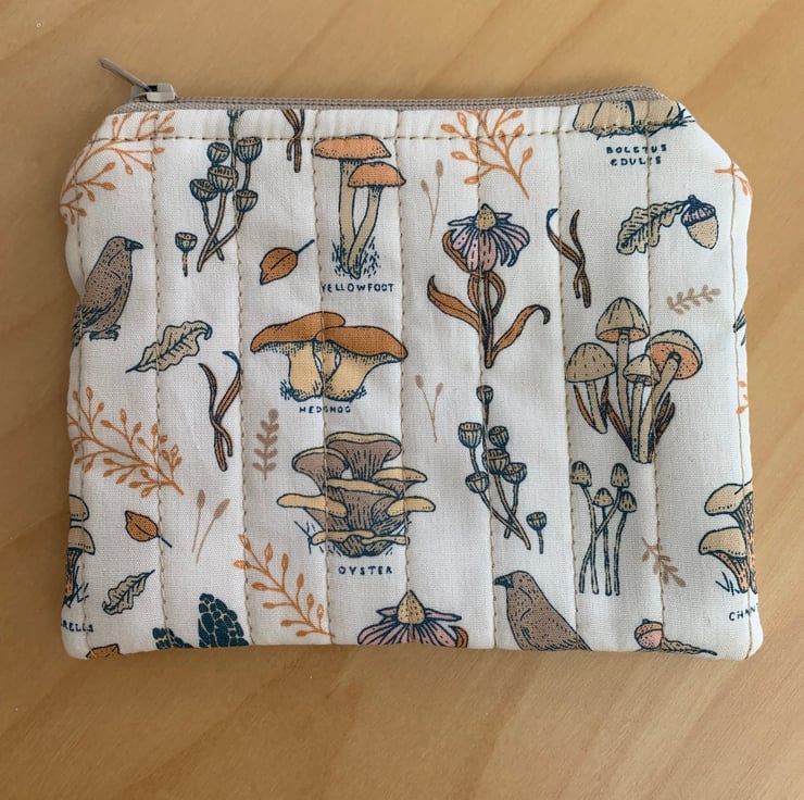 The purse is made in this beautiful mushroom and woodland print cotton fabric.