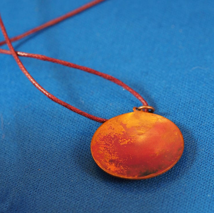I love making these copper and silver pendants, they are so unpredictable, it's nice to see the result which can be a real surprise;, especially the heat painting, sometimes the colours are really intense, sometimes more subtle.