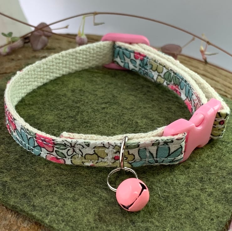 Is your Princess or Prince looking for the prettiest cat collar you ever did see? This is an adjustable, break away cat collar for a cat that is thinking of accessorising this season with pinkness and tiny flowers.