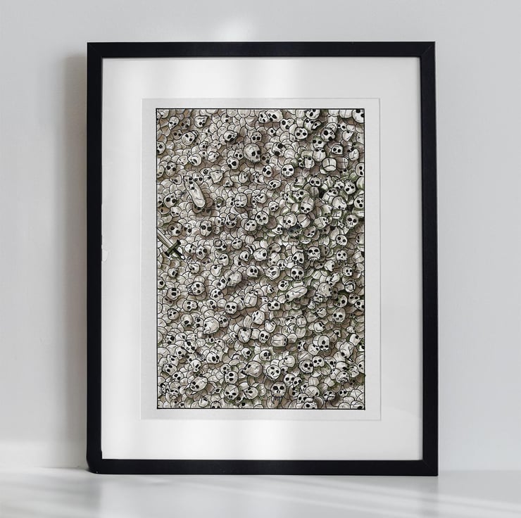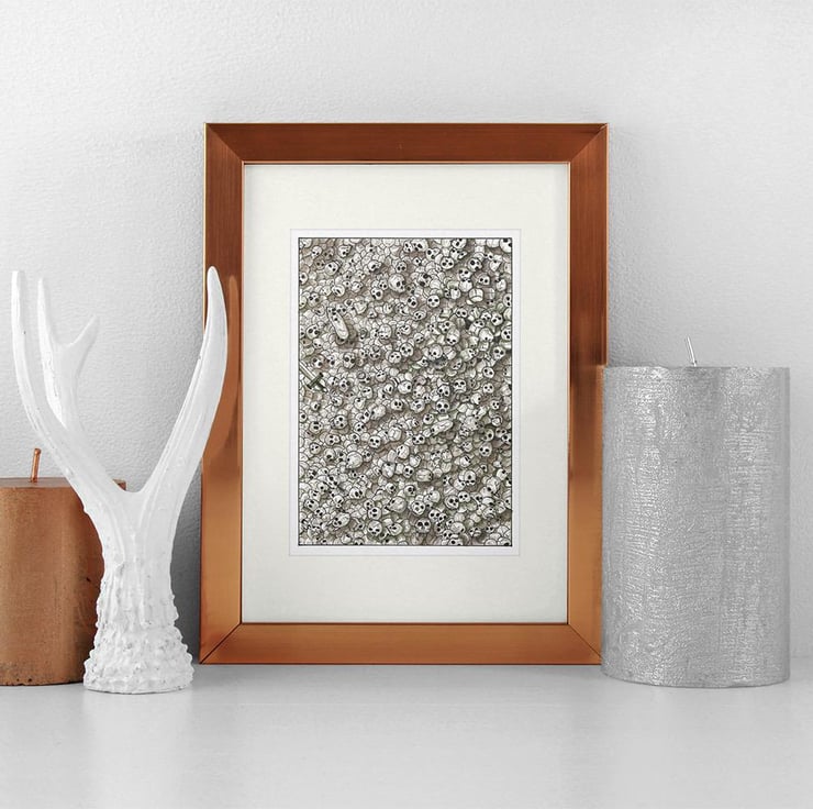 Monochrome Ink Illustration Intricate A5 Wall Art Hand-Drawn Exodu5