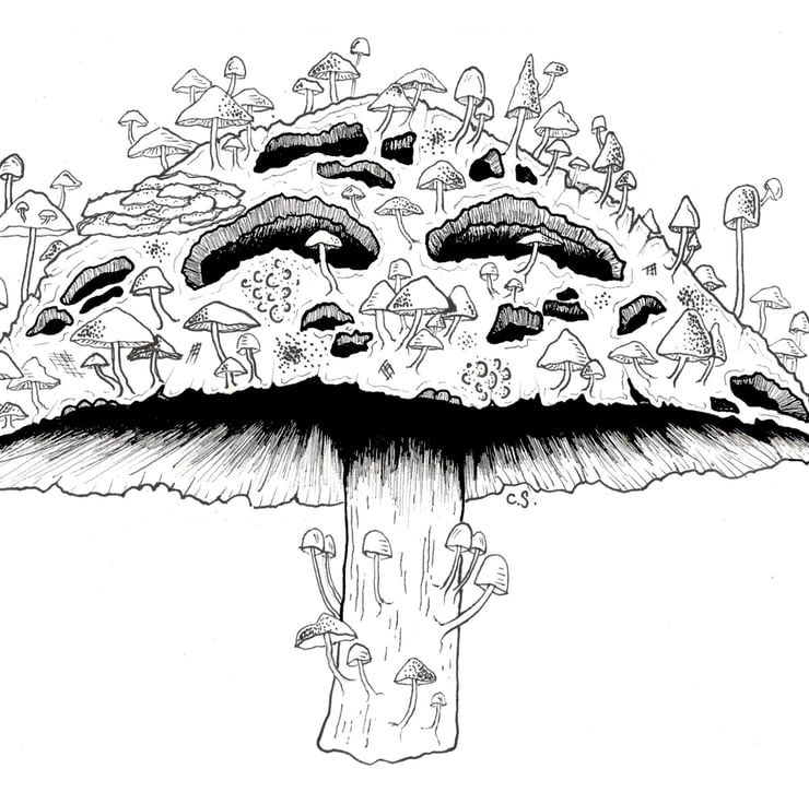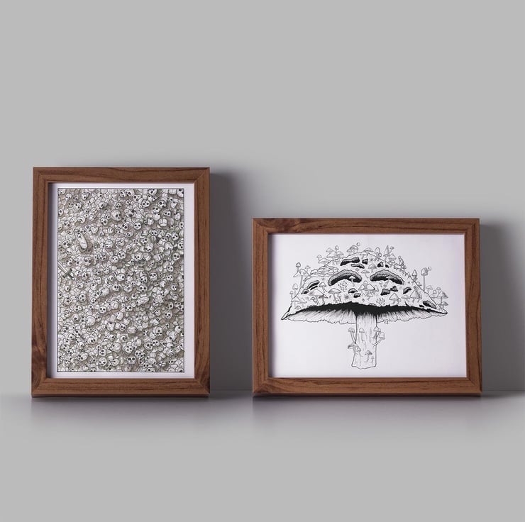 A5 Black and White Print - Handrawn Illustration of Mother Mushroom. (frame not included)