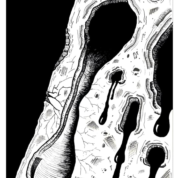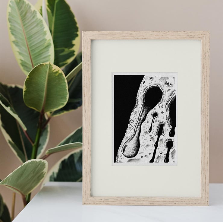 A5 Black and White Print - Handrawn Illustration Bleeding
