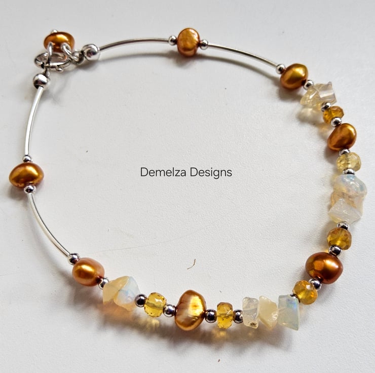 A sweet femanine bracelet designed and hand crafted in Cornwall using genuine Ethopian Wello Opal faceted roundel cut gemstones which slowly graduate in size complimented with all outer 925 sterling silver components.