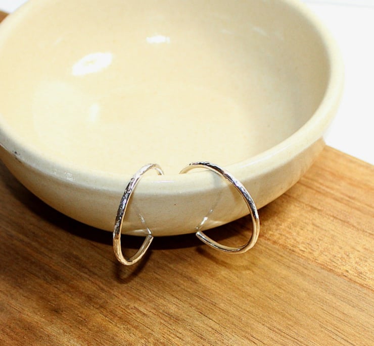 These slim hoops are hammered to maximise light reflection. They are ideal for daytime or evening wear.