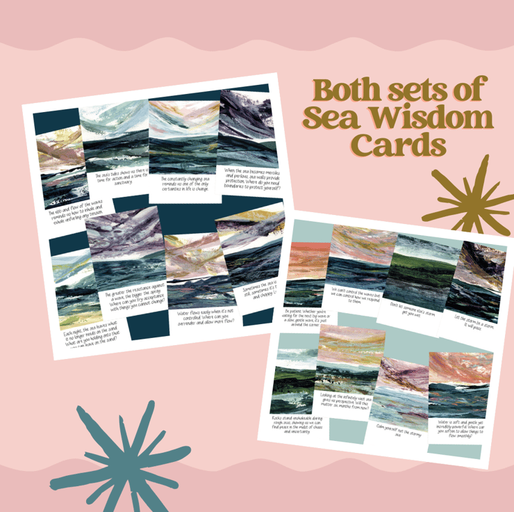 Set 1 & 2 of my Sea Wisdom Cards - 16 cards combining the wisdom that I’ve learned from the ocean with my seascape art inspired by the waves to help you surrender, let go, allow life to flow, gain perspective and find peace and calm during tough times.