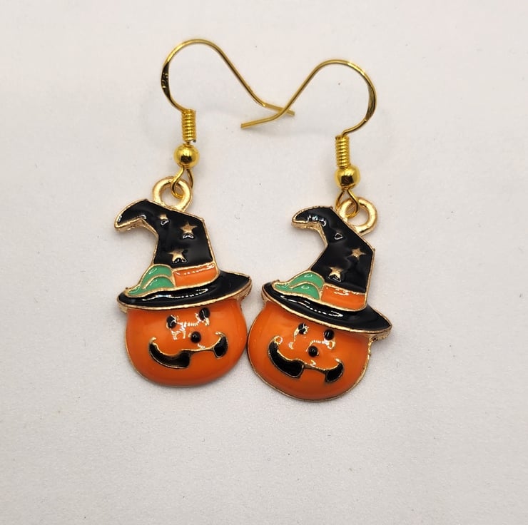 Gold plated Witch Pumpkin charm earrings. These fun charms are prefect for any Halloween outfit