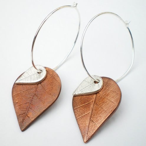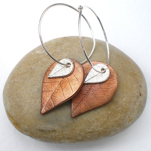 Three pairs of earrings in one, you can wear as pictured with both fine silver and copper leaves, or with the silver or copper individually!