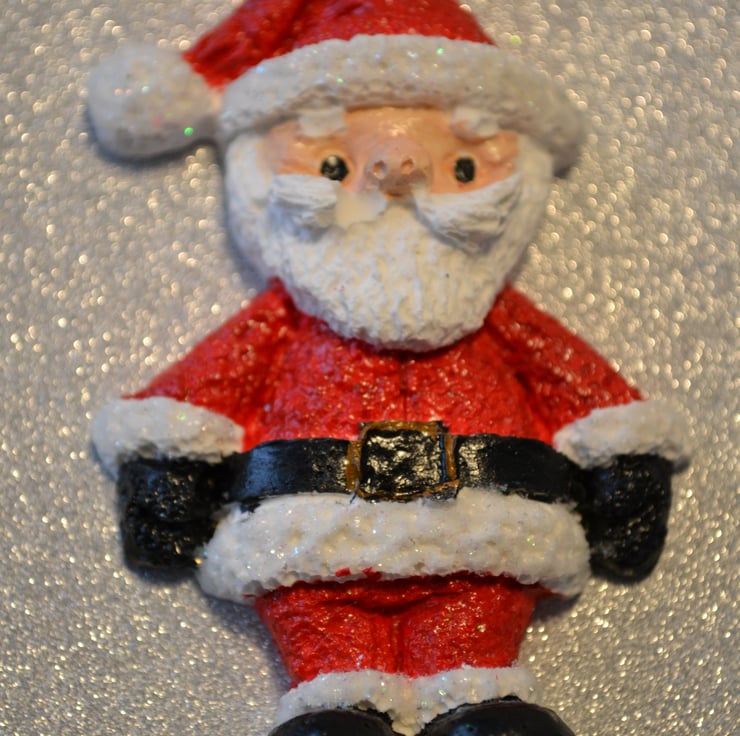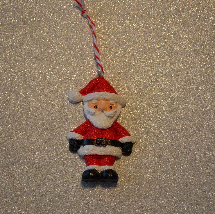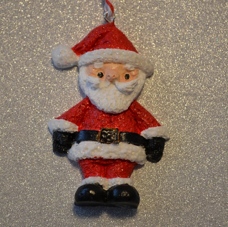 Bring festive cheer to your holiday décor with this charming Santa Claus Christmas ornament! Hand-painted with sparkling details, this Santa figurine features his classic red suit, fluffy white beard, and shiny black boots and belt. Perfect for hanging on your Christmas tree, using as a stocking stuffer, or gifting to a loved one who adores holiday traditions.