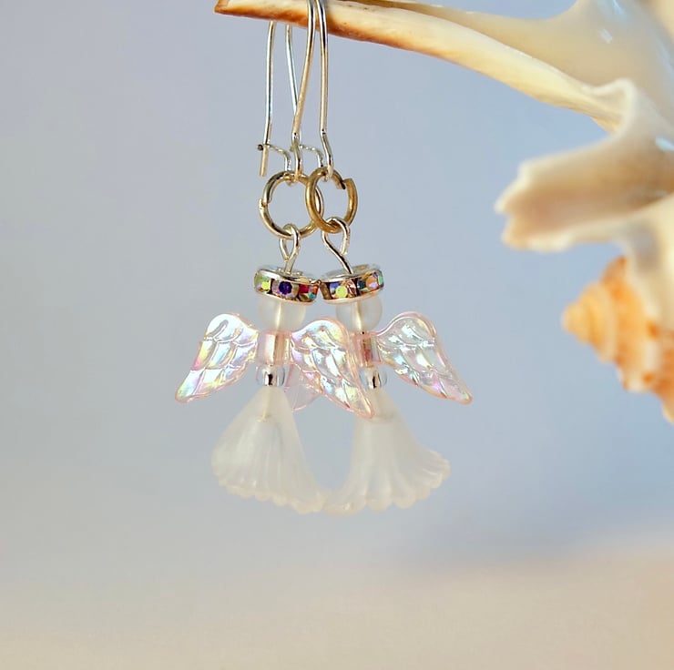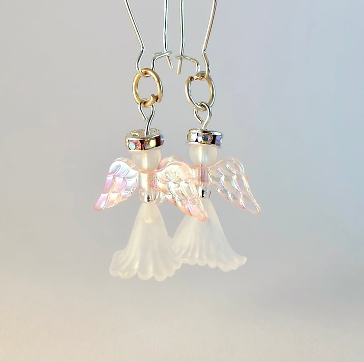 These dainty pink and white angel earrings would make a lovely Christmas present, but are wearable all year round - an angel is not just for Christmas!