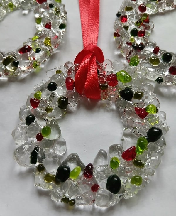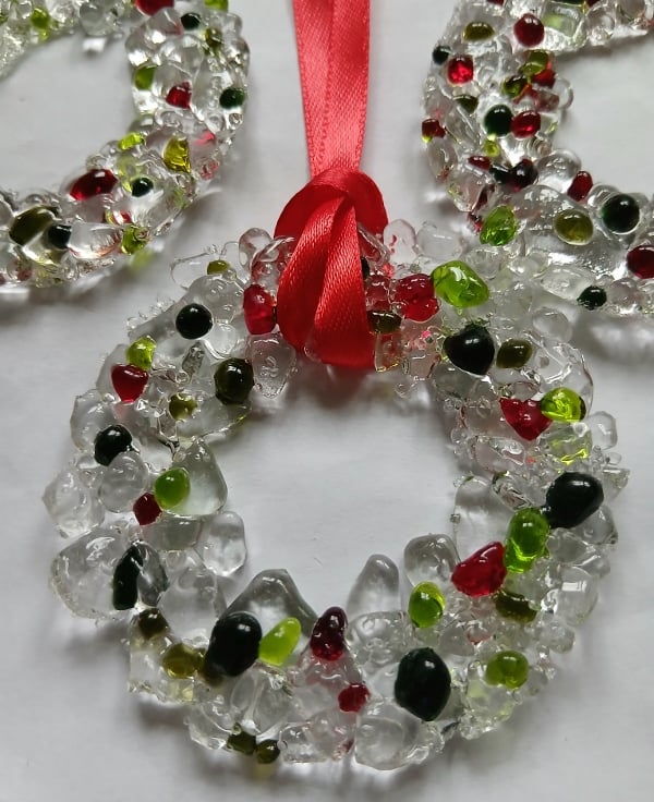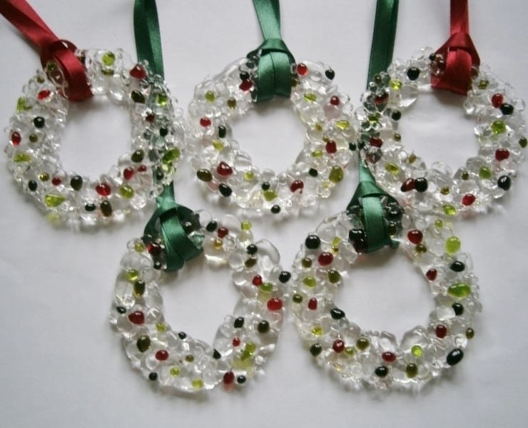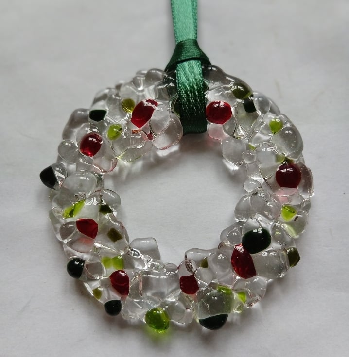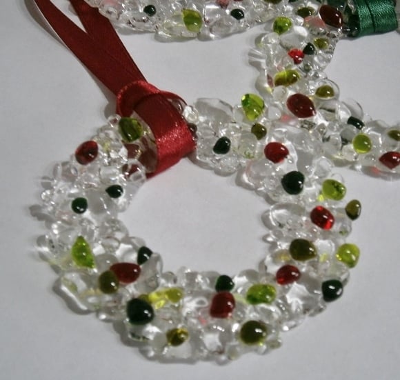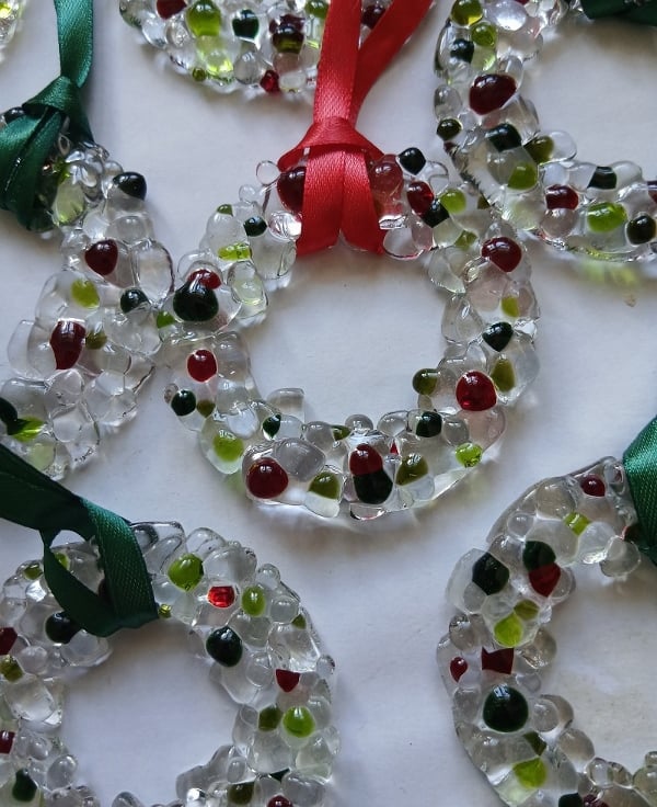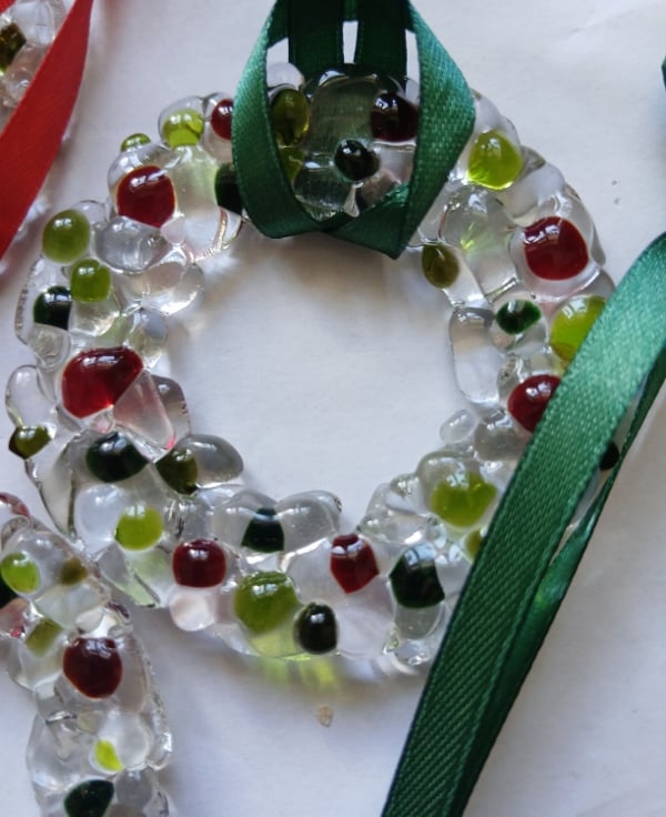 Hand crafted fused glass Christmas wreathes for the tree or just hanging.