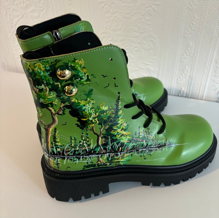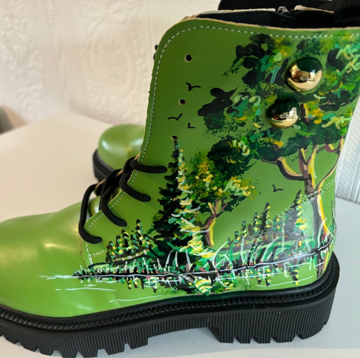 A pair of hand painted and sealed boots by Andrew Jenkins