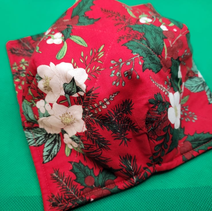 It's reversible with a winter flowers and berries design on one side and red and white spots on the other. Measures approx. 8" (20cm) and will hold a bowl up to 7" (18cm). Photos show it with a standard dessert bowl and a large noodle bowl.