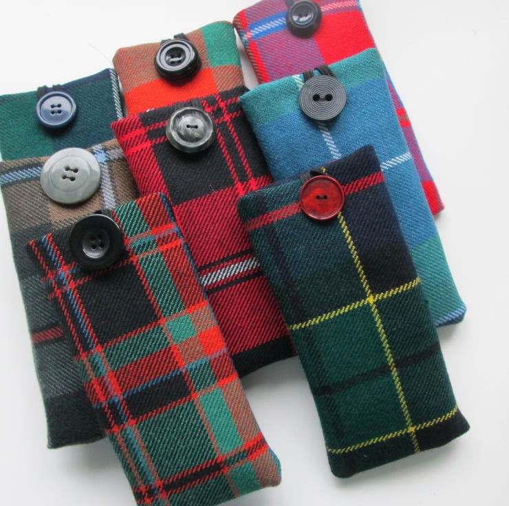 Charming little case for glasses or sunglasses in lovely woollen fabric with contrasting lining. Lightly padded