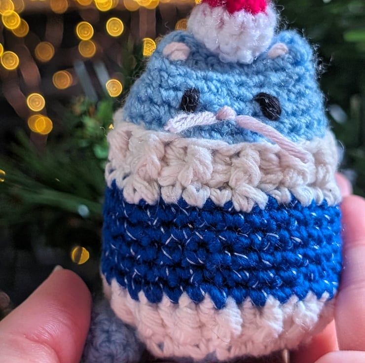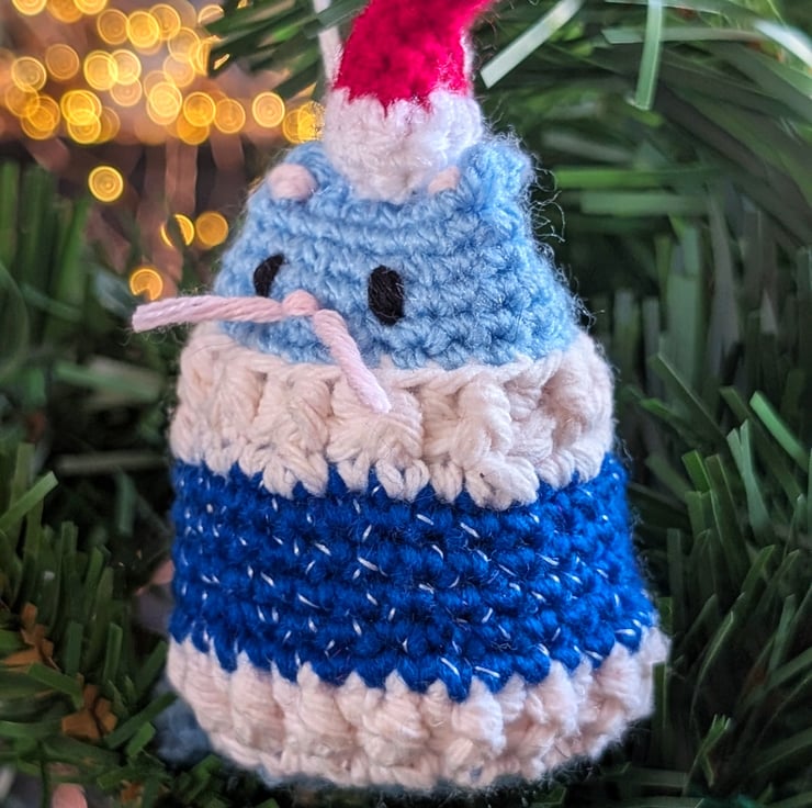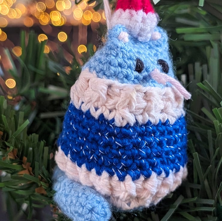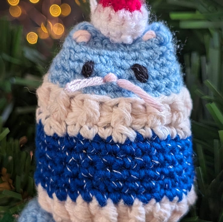 A wintery blue cat Christmas tree decoration, complete with Santa hat and blue glittery jumper! Makes a purrfect Christmas gift for cat lovers, handmade from upcycled and recycled materials.