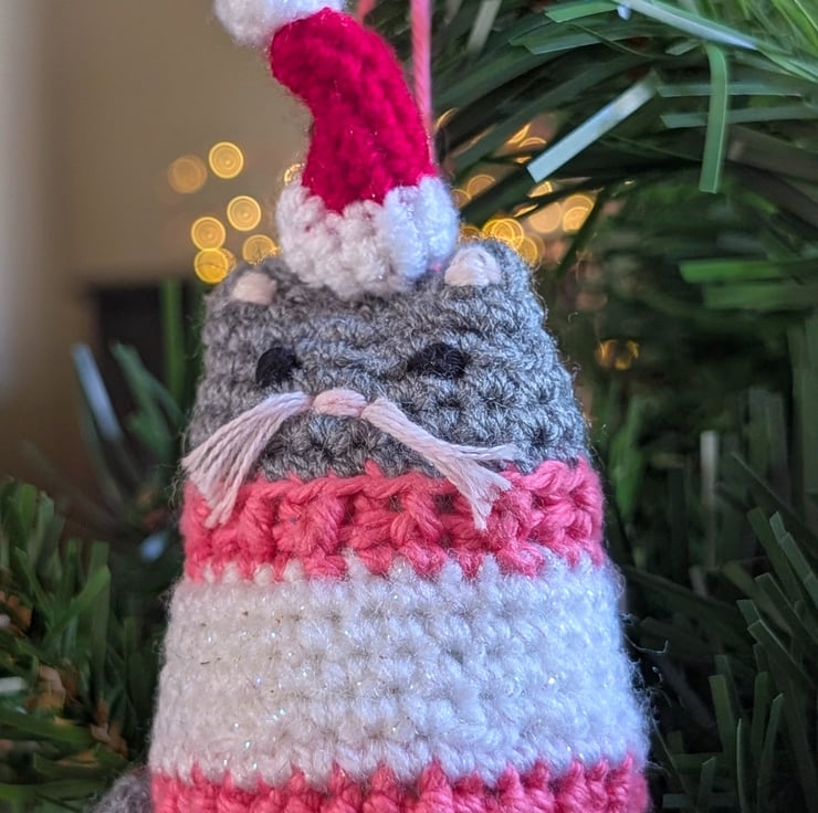 Grey Cat Christmas Tree Decoration, Cat Christmas Gift, Cat Hanging Decoration