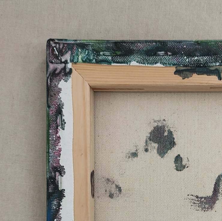 Acrylic Pour Canvas, with a purple, blue, white and black colour scheme, This canvas has been varnished with gloss varnish, will contain wedges for keeping canvas taut. The canvas size is W20cm x H 25cm x D 1.9cm