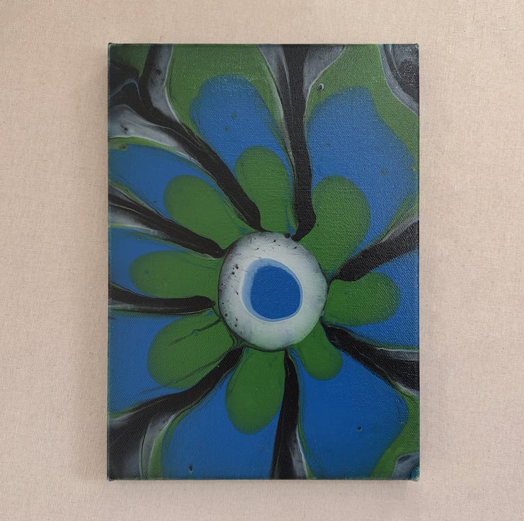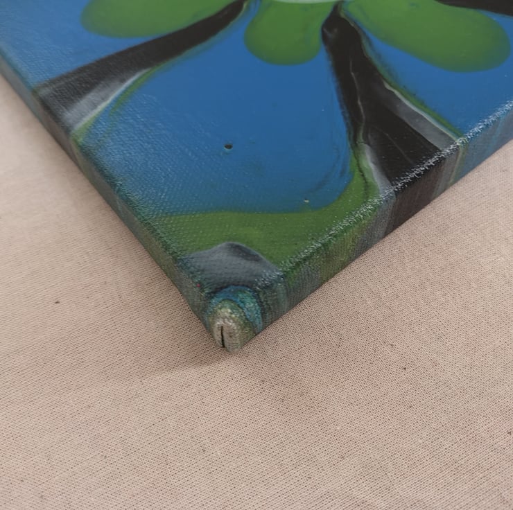Acrylic Pour Art Canvas, Wall Art - Green, Blue, White & Black Colour Scheme