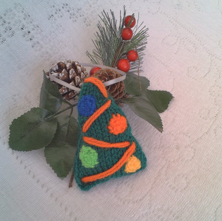 Set of 5 Christmas Tree Decorations, Christmas, Knitted Tree Decorations, Bauble, Tree Decorations