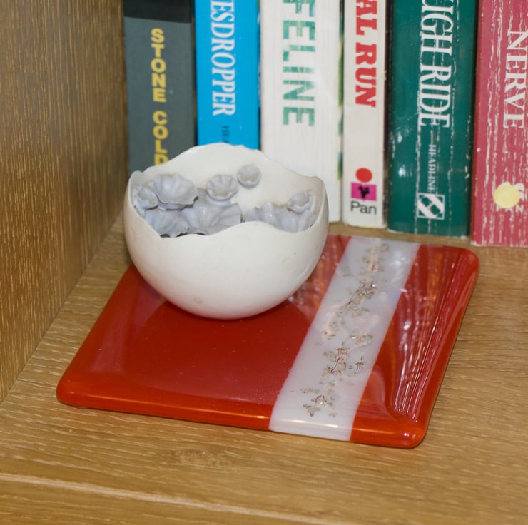 Red and White Fused Glass Coaster - 9305