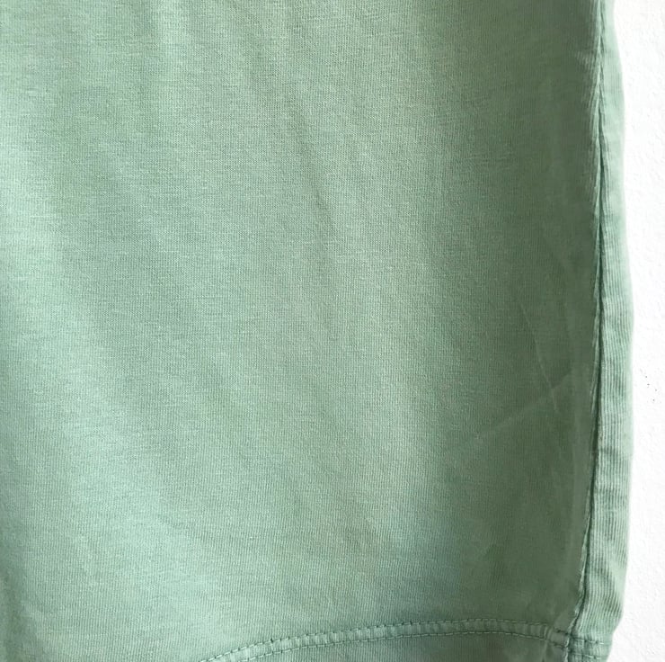 Stonewashed sage green (light green shades) with gold Wild Meadow flowers print to front.