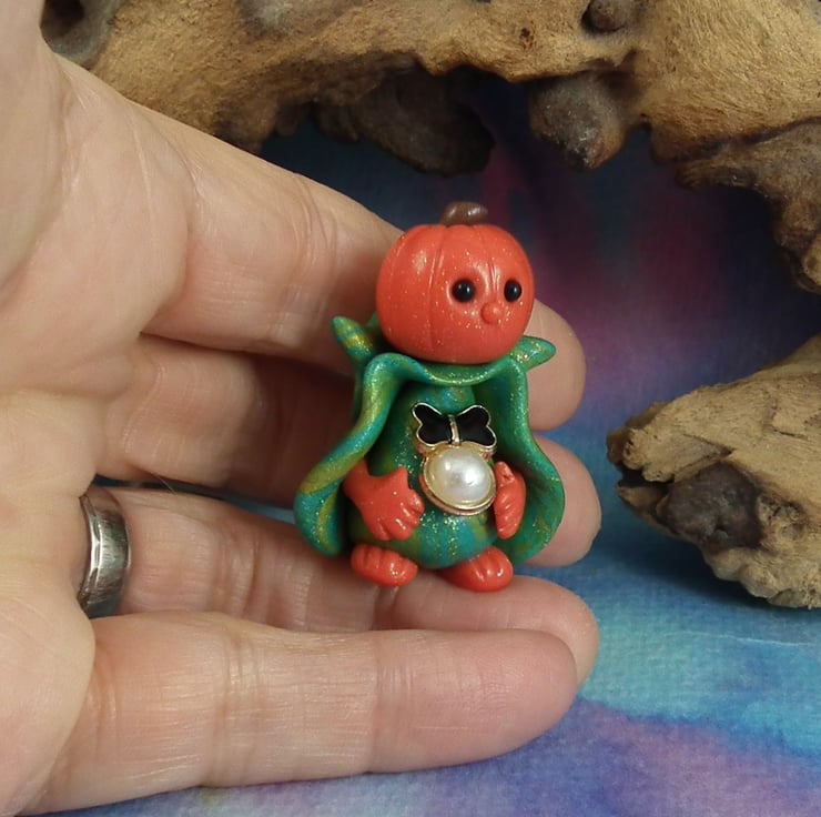 This is a 'one of a kind' creation having been entirely handmade without the use of moulds here at my studio on the Sussex Coast. Modelled with artist blend polymers before sealing with lacquer, Harry has sparkling black onyx eyes. He is just one and a half inches tall and has been instructed not to frighten the children ...