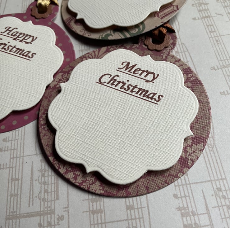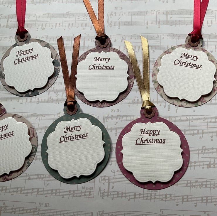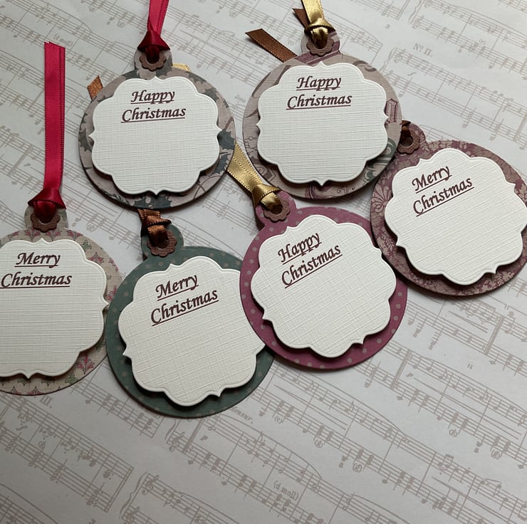 This is a set of 6 handmade Christmas gift tags. Each tag is approximately 60mm wide and has a space ready for you to write on.