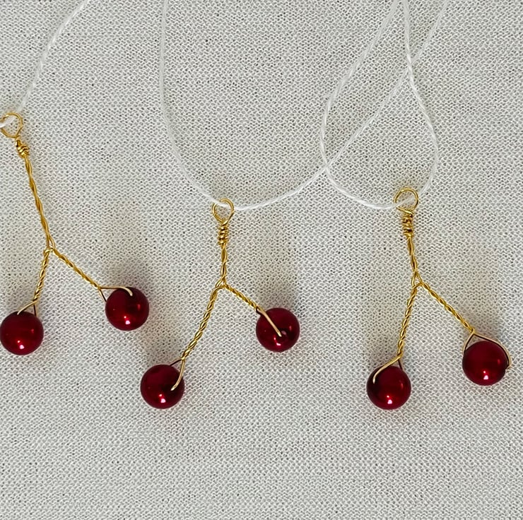 They are made from beautiful red Preciosa pearls and gilt on copper wire that has been carefully twisted.