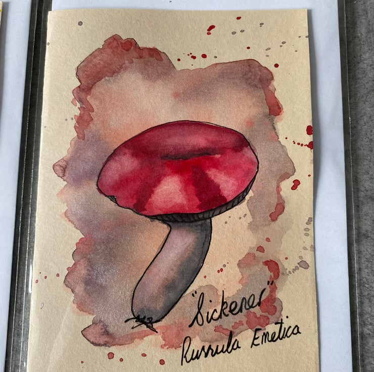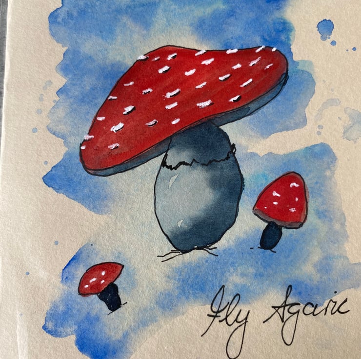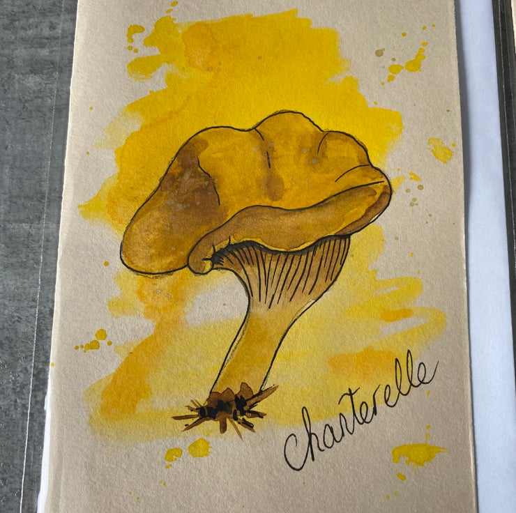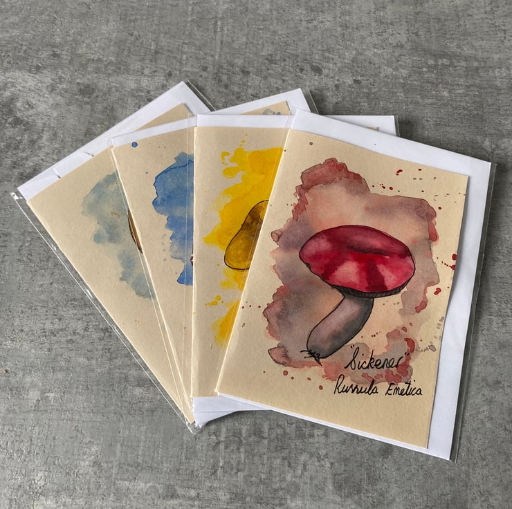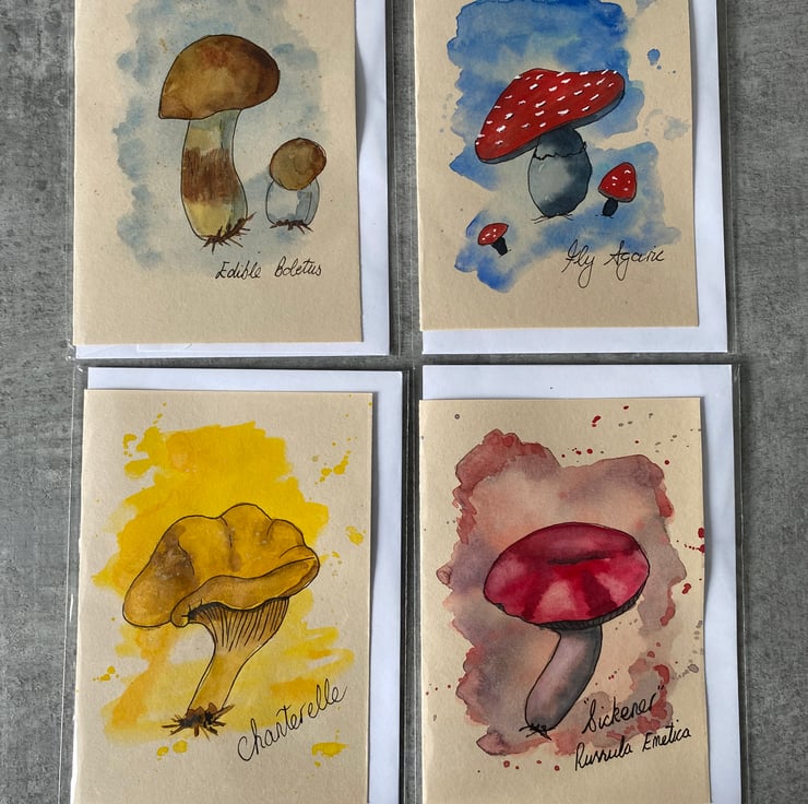 Set of 4 water colour cards. Hand painted fungi on Claire Fontaine mixed media paper with white envelopes.