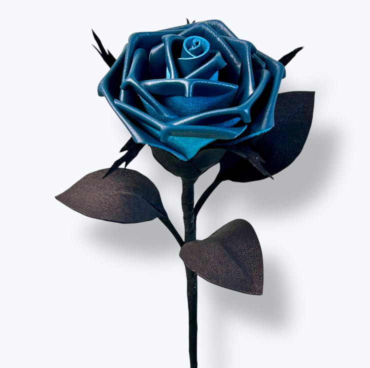 Blue and green meet in perfect harmony, creating the calming depth of teal. This handcrafted leather rose, named Sirella, takes inspiration from the sea – a muse of balance, harmony and beauty.