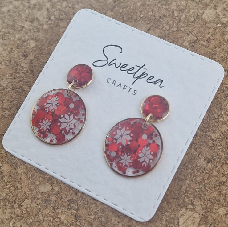 Handmade with care, these dangly earrings are crafted with resin. Each pair is unique, no two are exactly the same, giving you a truly one-of-a-kind accessory. Approximately 30mm long. Hypoallergenic studs.