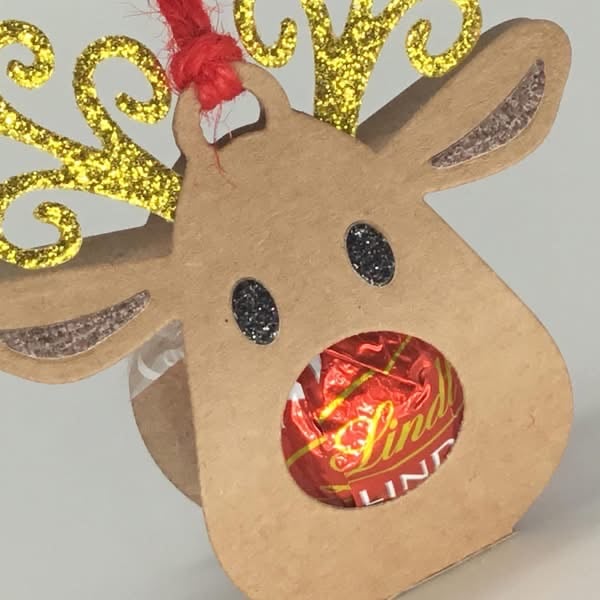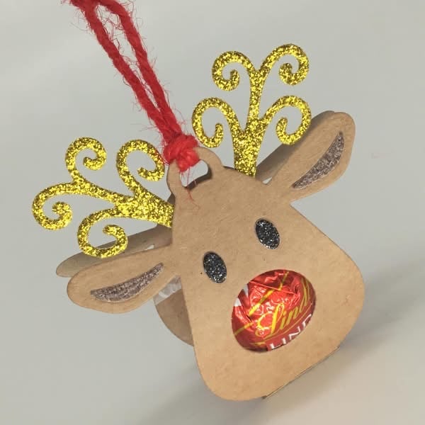 A handmade reindeer hanging Christmas decoration, designed to hold a single Lindt chocolate. CHOCOLATE NOT INCLUDED in order to minimise postage costs. I am happy to include the chocolates for an additional cost if needed, please message for details.