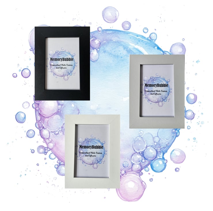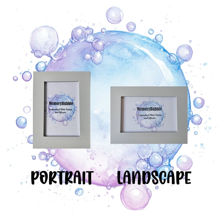 The frame is available in a white, light grey or black colour. It can be made landscape or portrait and comes in three different sizes to fit a 6 x4, 7 x5 or a 8x6 photo.