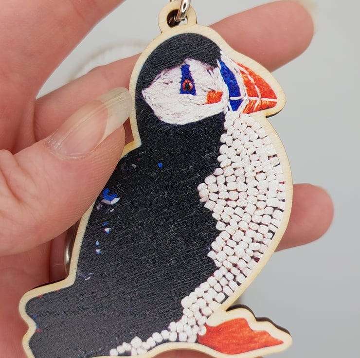 Bring a bit of the coast to your everyday with this cheerful puffin keyring, inspired by my original bead embroidery artwork. With its bright beak and curious look, this charming seabird is sure to raise a smile – whether you’re a bird enthusiast, a fan of seaside strolls, or simply love wildlife-inspired accessories.