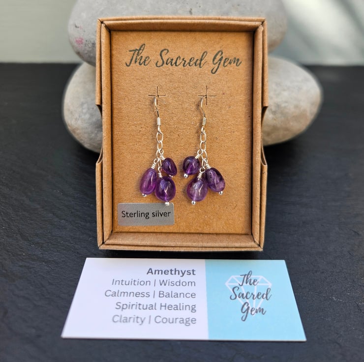 The earrings will be carefully packaged in a kraft gift box made from 100% recycled card. Underneath the box insert is a small poly bag for storage and an anti-tarnish strip to help keep the silver shiny. You will also receive a Sacred Gem gemstone card highlighting the meanings associated with , and on the reverse of the card are some simple jewellery-care guidelines.