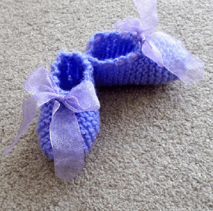 A cute little pair of bootees knitted in garter stitch for Baby.