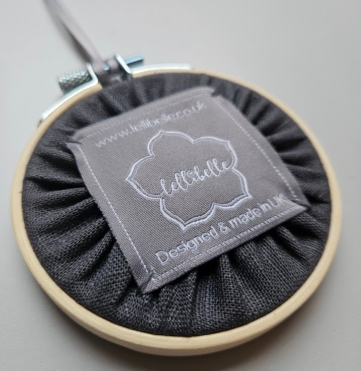 Hanging ribbon: silver-grey grosgrain, 3mm wide.
