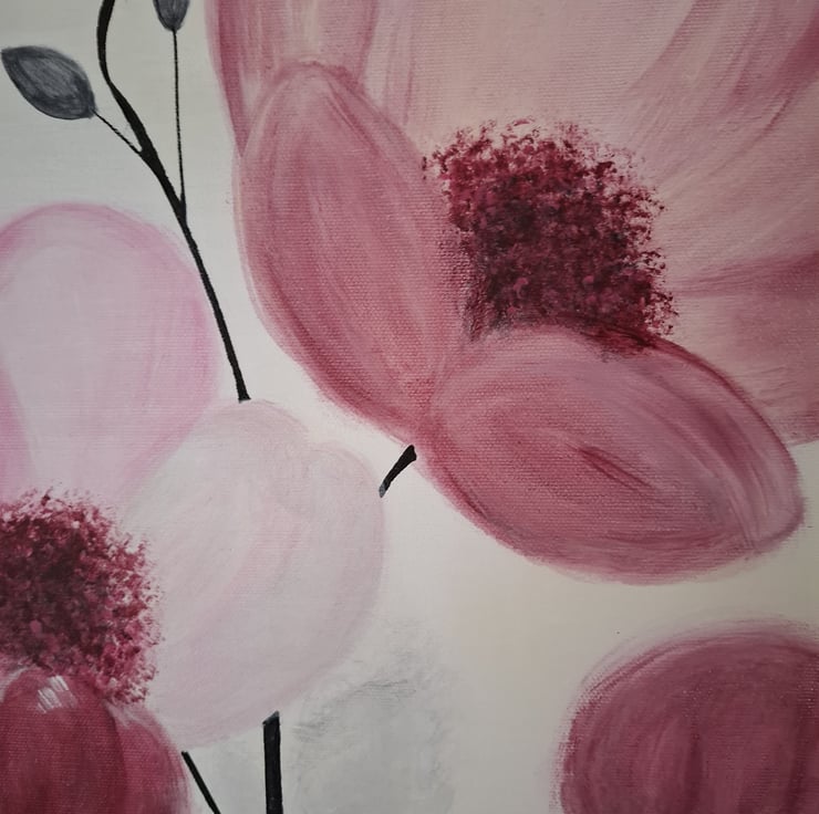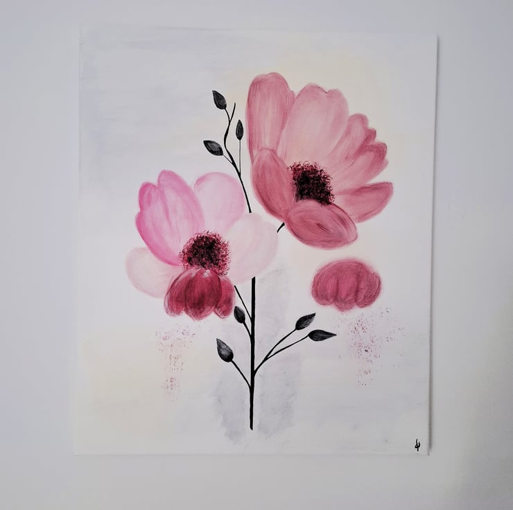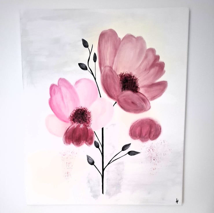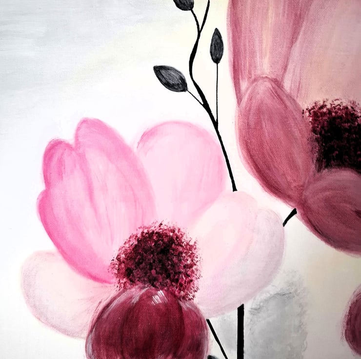 Original Abstract Acrylic Painting - Abstract Art – Pink Flowers