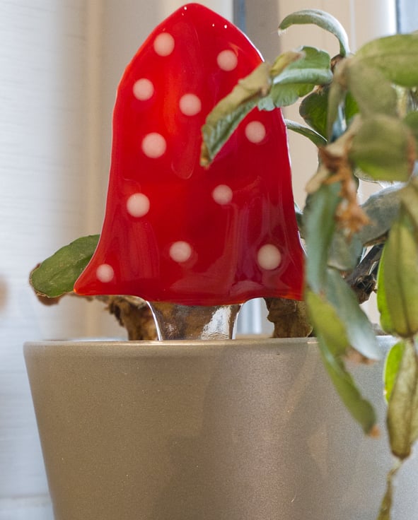 Our Pot Toadstools add colour to your garden or plant pots throughout the year. This one has white spots on a red cap - official name is Fly agaric or Amanita muscaria.