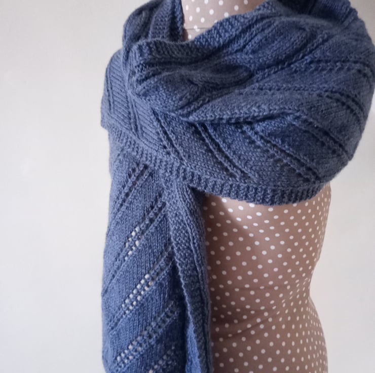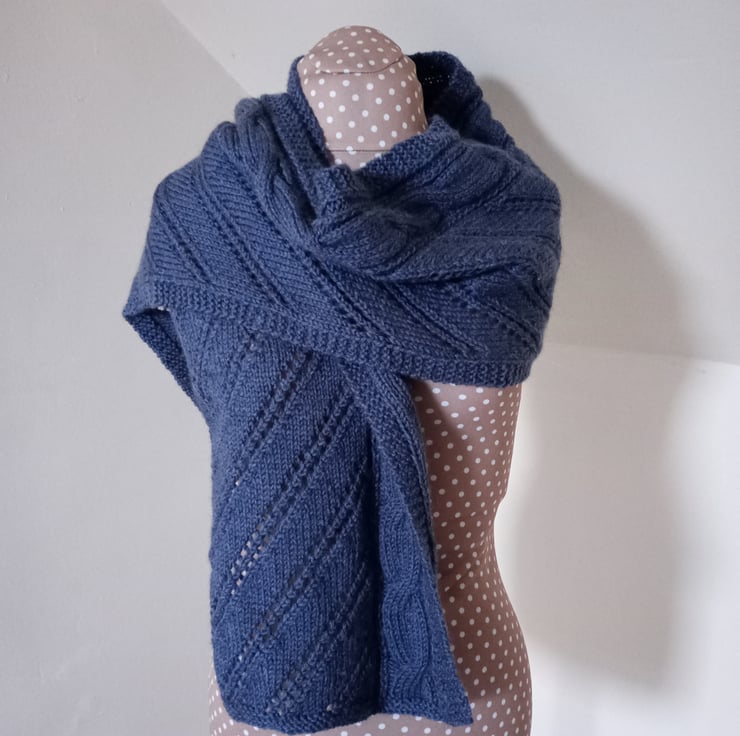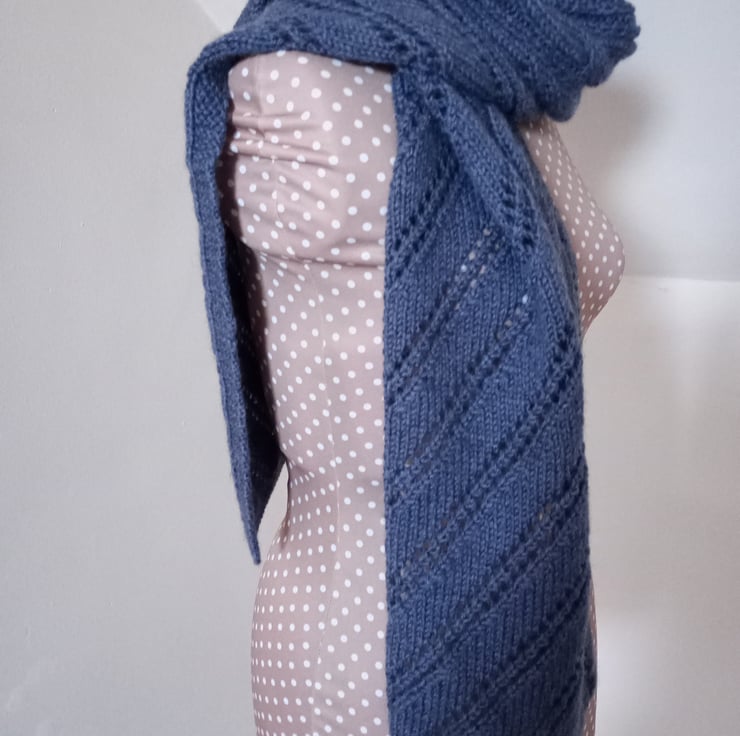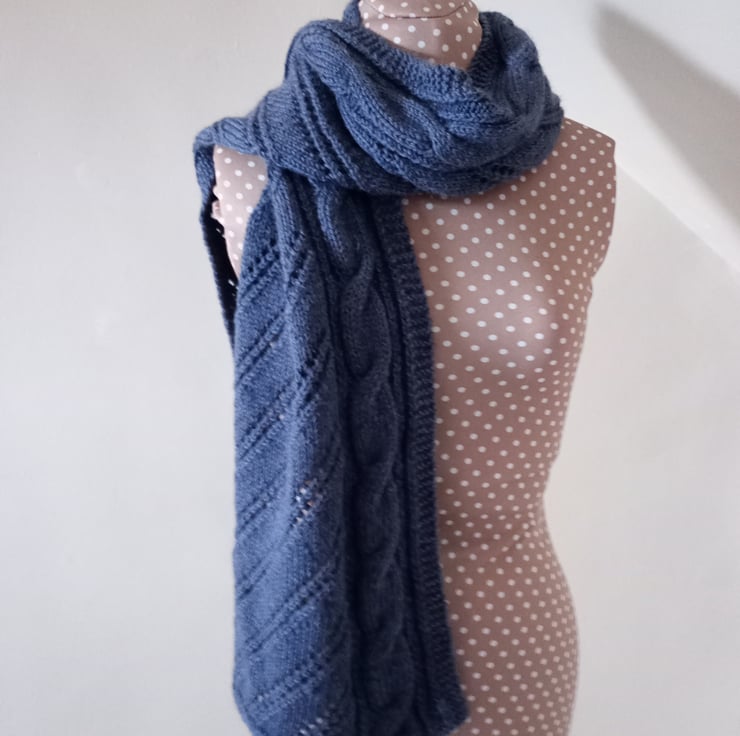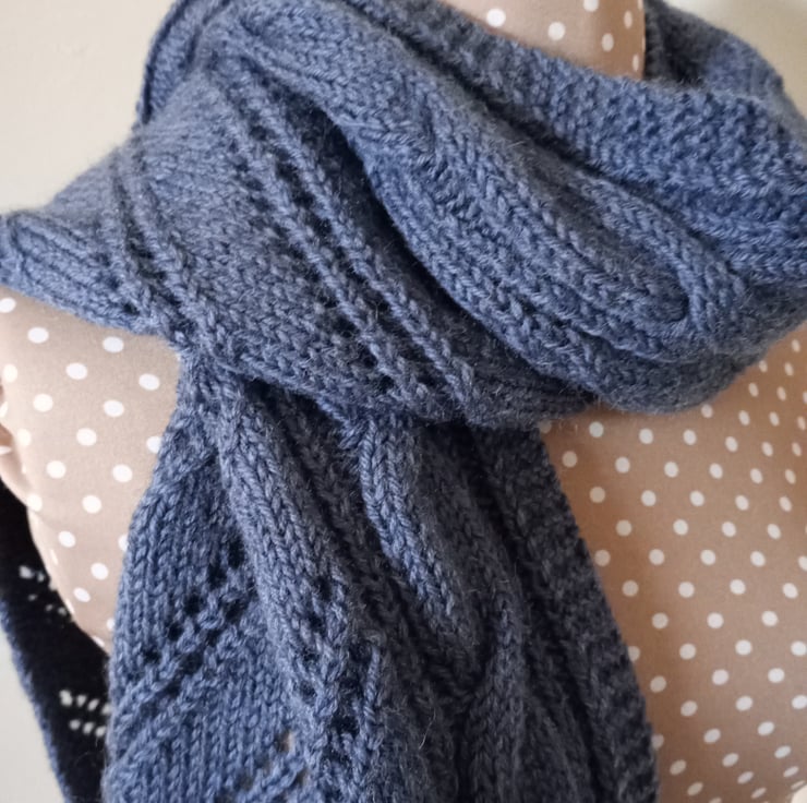 Dark Moon is a gorgeous hand knit scarf with a loopy cable detail, a lacy panel and a whole lot of squish. Hand knitted in a pure wool yarn and designed as a genderless garment, this is sure to keep any body warm and snuggly in the colder months.