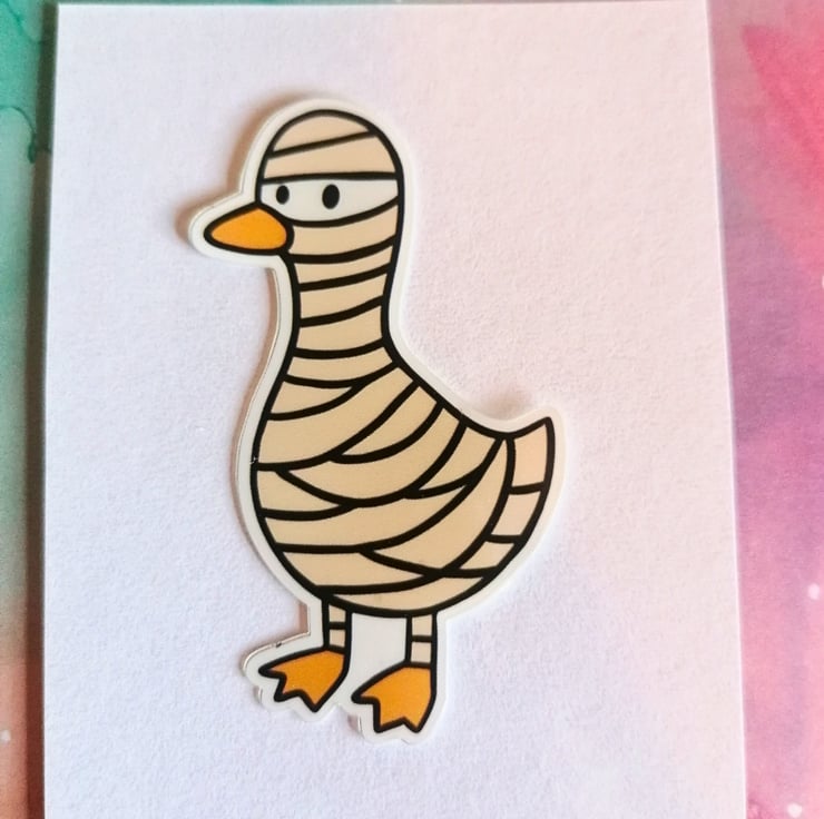 Mother (mummy) Goose glossy vinyl sticker. Made with quality vinyl sticker paper and a clear laminate for extra protection and durability. This sticker can be stuck on anything you like, including laptops, Kindles, books, and windows - anything! Suitable for indoor and outdoor use.