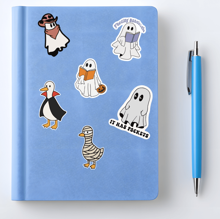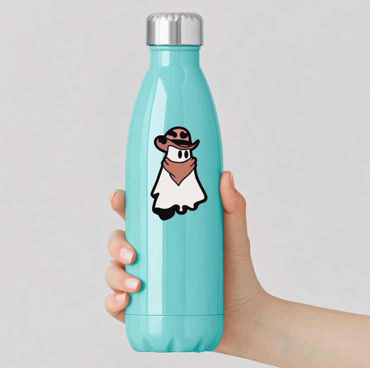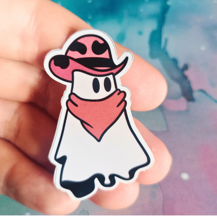 Howdy Ghost glossy vinyl sticker. Made with quality vinyl sticker paper and a clear laminate for extra protection and durability. This sticker can be stuck on anything you like, including laptops, Kindles, books, and windows - anything! Suitable for indoor and outdoor use.