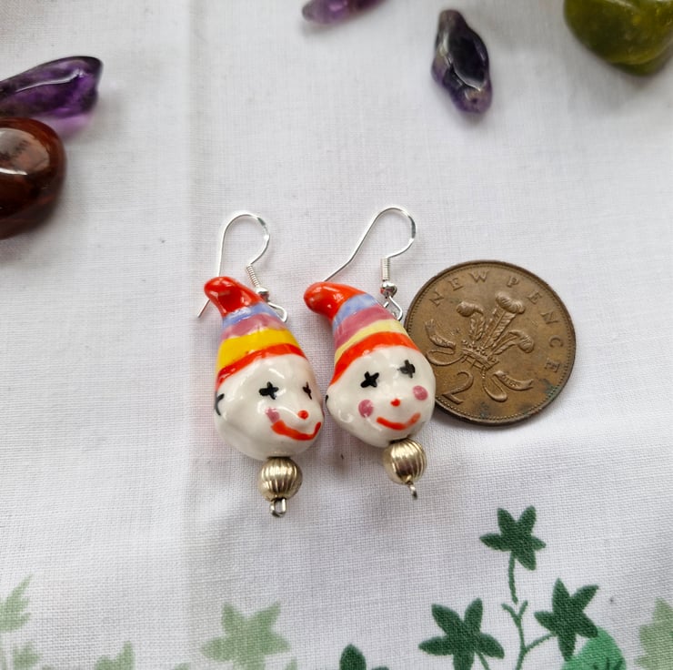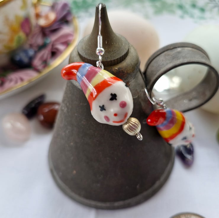 Dock the clown earrings, hand-crafted with care, are a delightful and unique accessory. inspired by docks life on Meadow belle farm and his love for collecting Henrietta's eggs, these earrings capture the whimsy and rustic charm of farm life. Perfect for anyone who loves whimsical style, these earrings are a playful statement piece that celebrates a simple, joyful existence. Gift Boxed