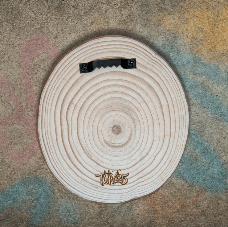 I start with a natural wood slice, which I hand-paint with a spooky, moody background. Then, using a precise laser, I engrave the haunted house, ghostly figures, and bats. The laser cuts through the paint, revealing the warm natural wood beneath and creating a beautiful, textured effect that brings the scene to life.