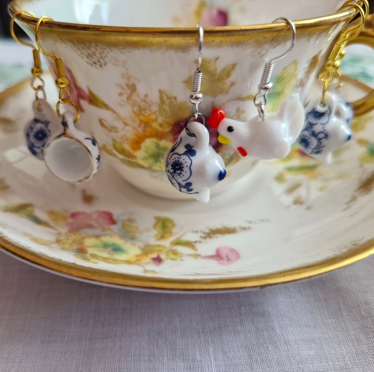 At Meadow belle farm we often have afternoon tea with mismatched vintage tea sets. The tea sets contain memories from Victorian tea parties and garden parties. take a piece of the story with you when you purchase these earrings.