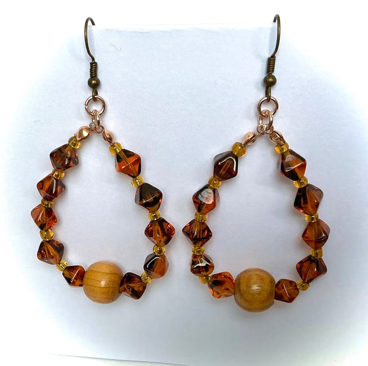 Long and dangly with bronze ear wires and wooden bead centre feature.